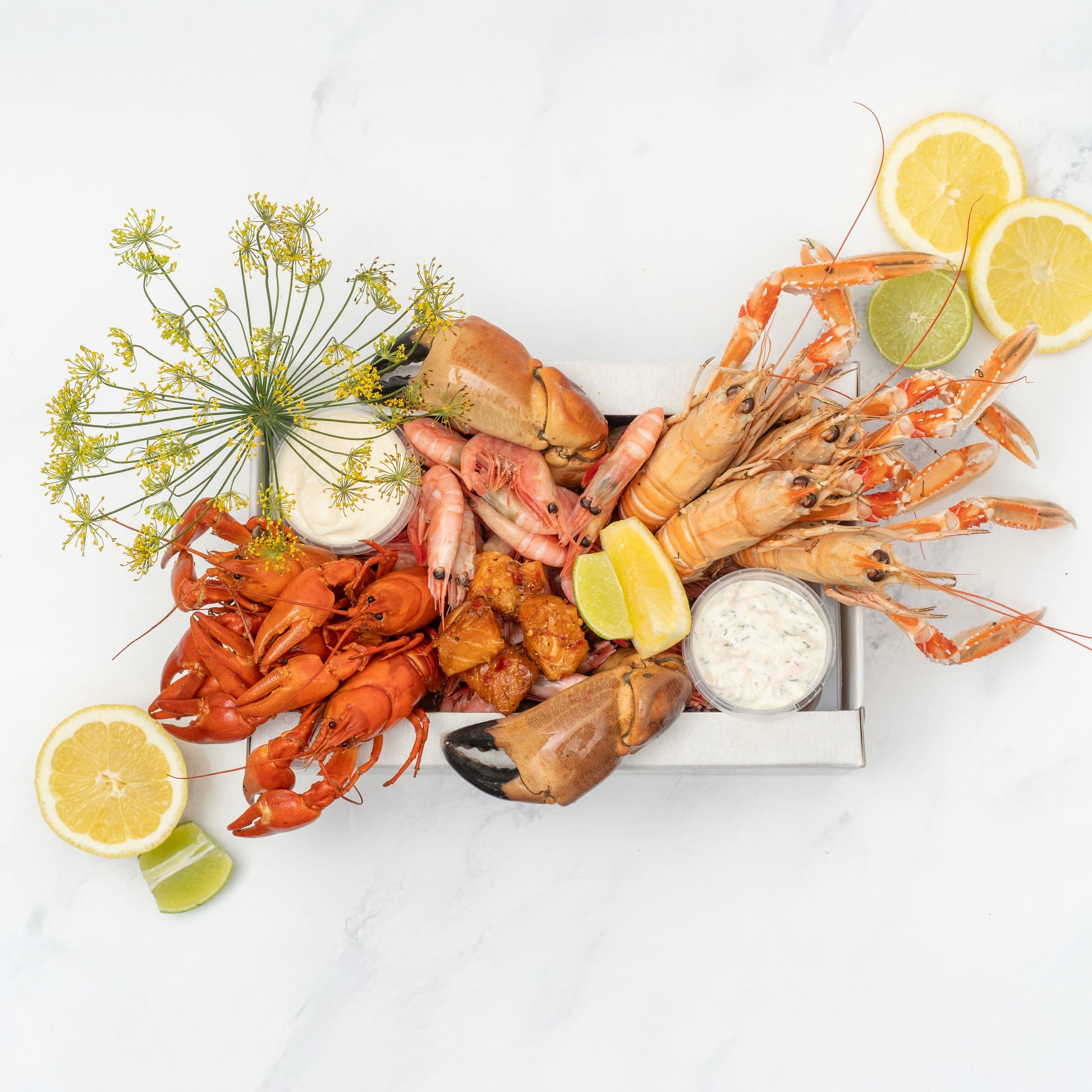 Vår skaldjursbricka deluxe är fylld till bredden med ännu mer läckra delikatesser från hav och sjö till de mer lyxigare stunderna. Njut av våra egenfiskade premium Vätternkräftor, havskräftor, krabbklor och våra egensaltade räkor tillsammans med egenproducerad aioli, skagenröra och på toppen varmrökta chili vitlök laxnuggets.